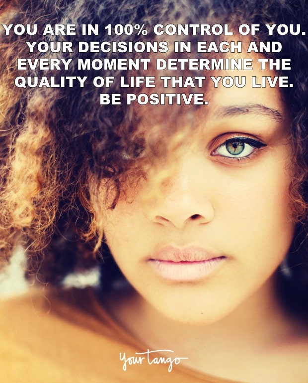 "You are in 100% control of you. Your decisions in each and every moment determine the quality of life that you live. Be positive." — Unknown