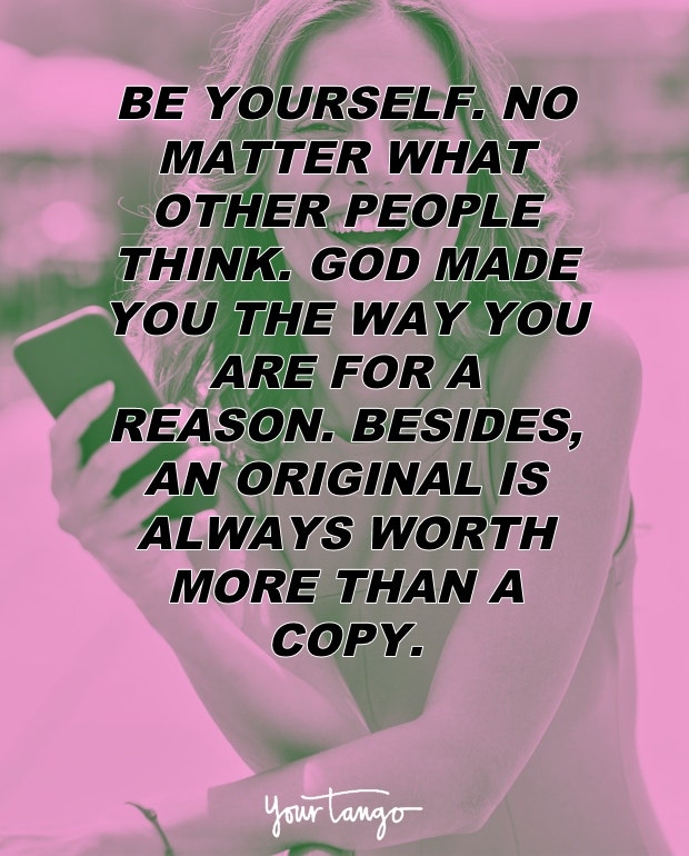 "Be yourself. No matter what other people think. God made you the way you are for a reason. Besides, an original is always worth more than a copy." — Unknown