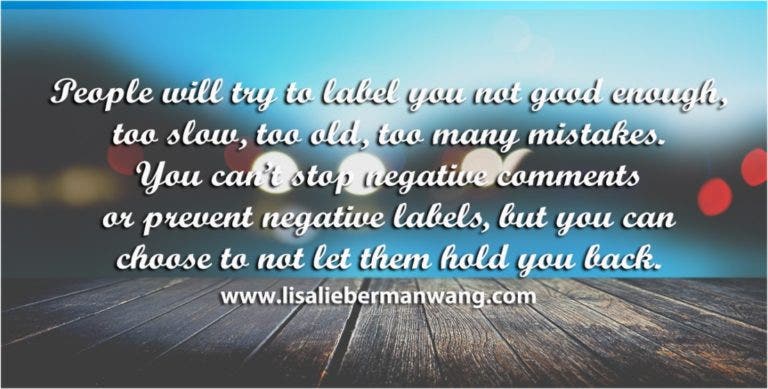 1. “People will try to label you not good enough, too slow, too old, too many mistakes. You can’t stop negative comments or prevent negative labels, but you can choose to not let them hold you back." — Lisa Lieberman-Wang