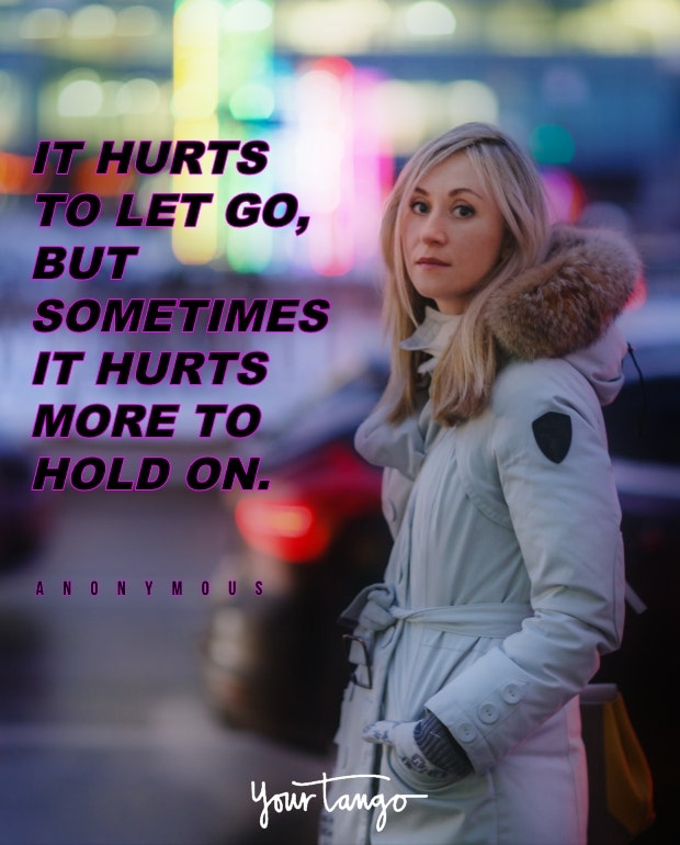 "It hurts to let go, but sometimes it hurts more to hold on." — Anonymous