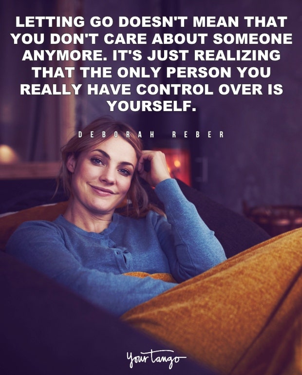 "Letting go doesn’t mean that you don’t care about someone anymore. It’s just realizing that the only person you really have control over is yourself." — Deborah Reber
