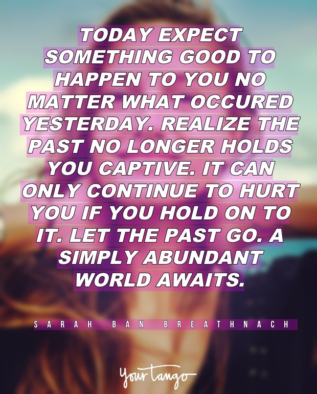 "Today expect something good to happen to you no matter what occurred yesterday. Realize the past no longer holds you captive. It can only continue to hurt you if you hold on to it. Let the past go. A simply abundant world awaits." — Sarah Ban Breathnach
