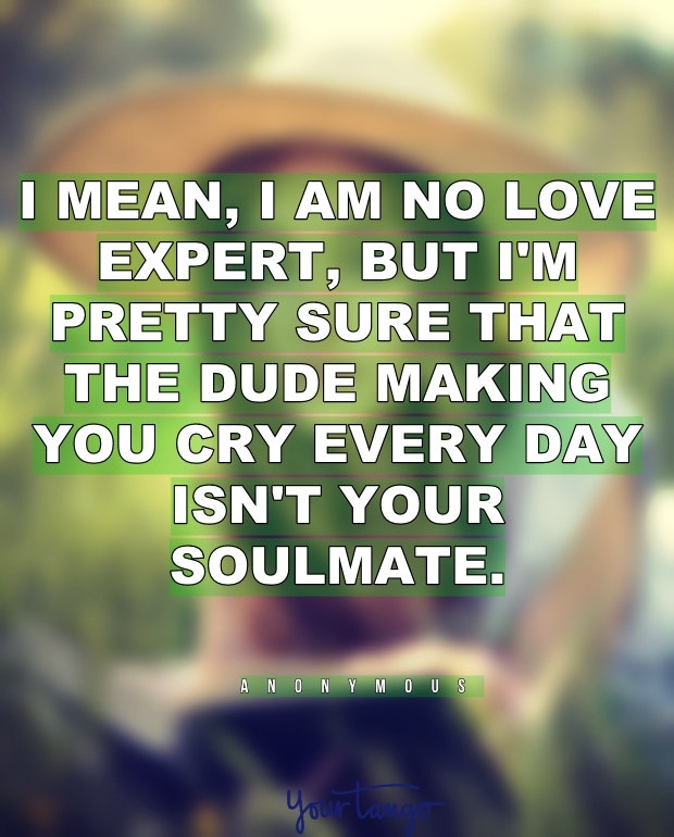 "I mean, I am no love expert, but I'm pretty sure that the dude making you cry every day isn't your soulmate." Anonymous