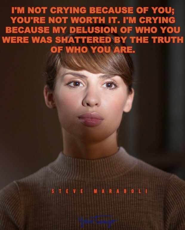 "I’m not crying because of you; you’re not worth it. I’m crying because my delusion of who you were was shattered by the truth of who you are." Steve Maraboli