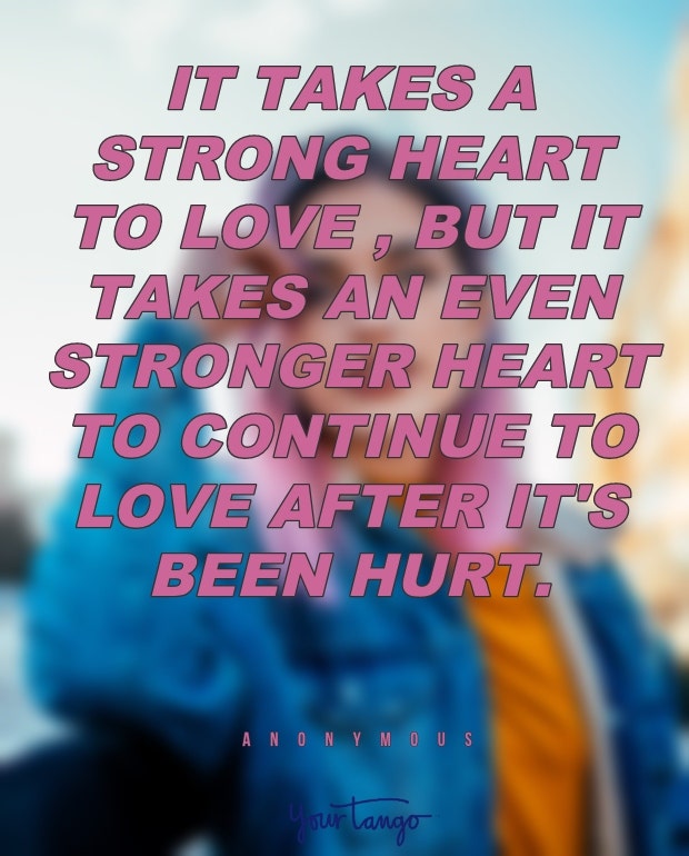 "It takes a strong heart to love, but it takes an even stronger heart to continue to love after it’s been hurt." Anonymous