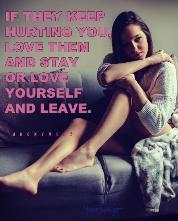 "If they keep hurting you, love them and stay or love yourself and leave." — Anonymous