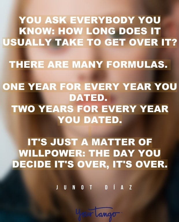 "You ask everybody you know: How long does it usually take to get over it? There are many formulas. One year for every year you dated. Two years for every year you dated. It’s just a matter of willpower: The day you decide it’s over, it’s over." Junot Díaz