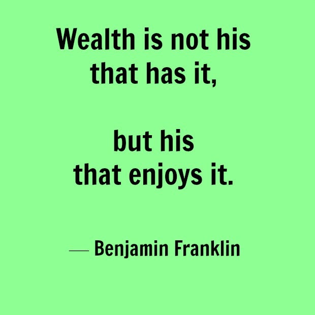 14. "Wealth is not his that has it, but his that enjoys it." — Benjamin Franklin
