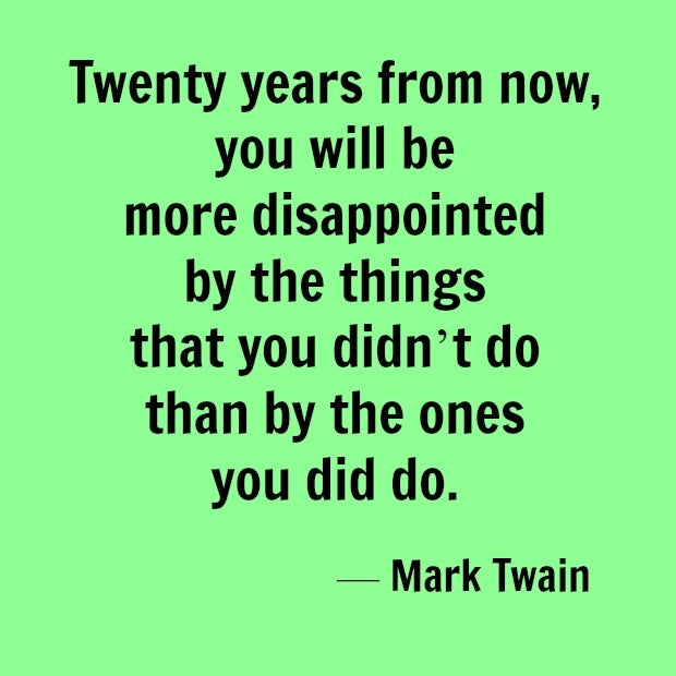 8. "Twenty years from now you will be more disappointed by the things that you didn’t do than by the ones you did do." — Mark Twain