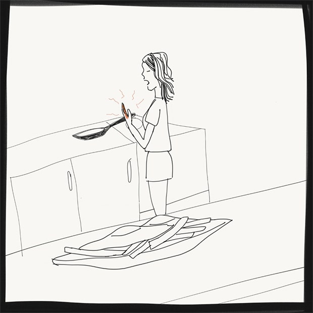So many burns just for eggs and chips, how TF do people have dinner parties? Illustration by author.