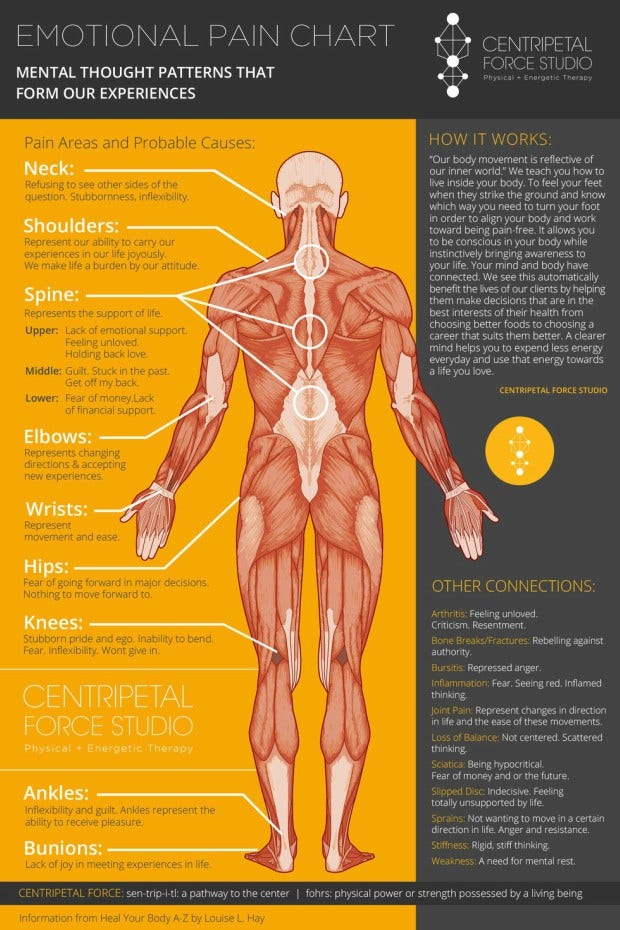 If you're feeling pain in certain parts of your body, it could be a sign something else is going on. If you suffer from inflammation, it could be a sign of fear in your life. You're seeing red, and even your thinking has become inflamed.