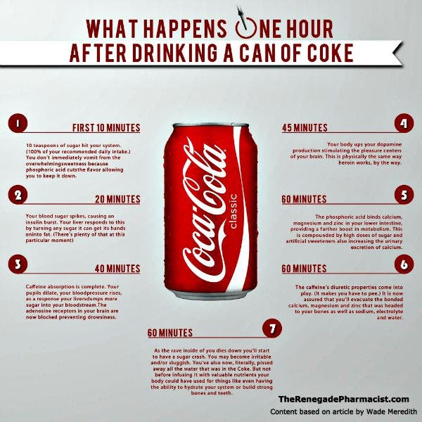 The Renegade Pharmacist took this post, added in some additional information about the dangers of high fructose corn syrup that's in Coke, and made this infographic: