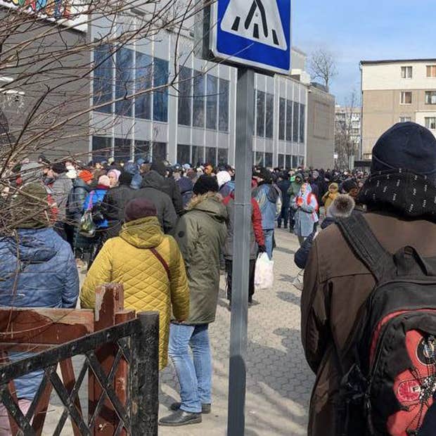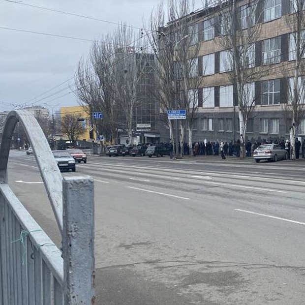 Photo: A line to a Mariupol grocery store. First days of war.
