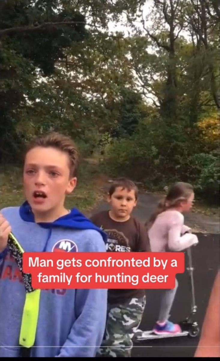 “You’re like a hero on Long Island right now,” the dad says before his daughter starts crying, “because kids are upset. They’re crying because you want to kill deer.” The hunter apologizes for the fact that kids are crying, but he claims that it’s the dad’s job to explain to his kids that it’s a part of life.