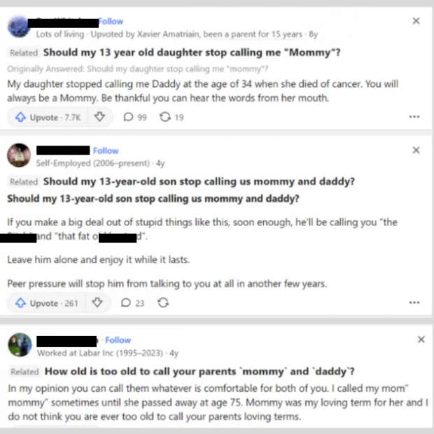 Though most people were on the same page and thought it was ridiculous for the man to even consider stopping his daughter from saying "daddy," it’s a question that has been asked repeatedly on the forum, and men aren’t the only ones seeking answers. Women have also questioned whether or not the word "mommy" was appropriate as their young children matured.