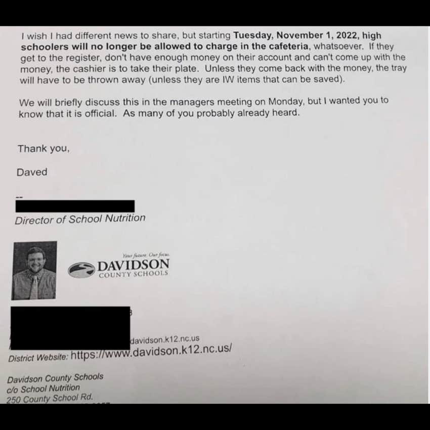 That’s why people were so alarmed when a North Carolina school sent out a memo stopping students who didn’t have money from eating.