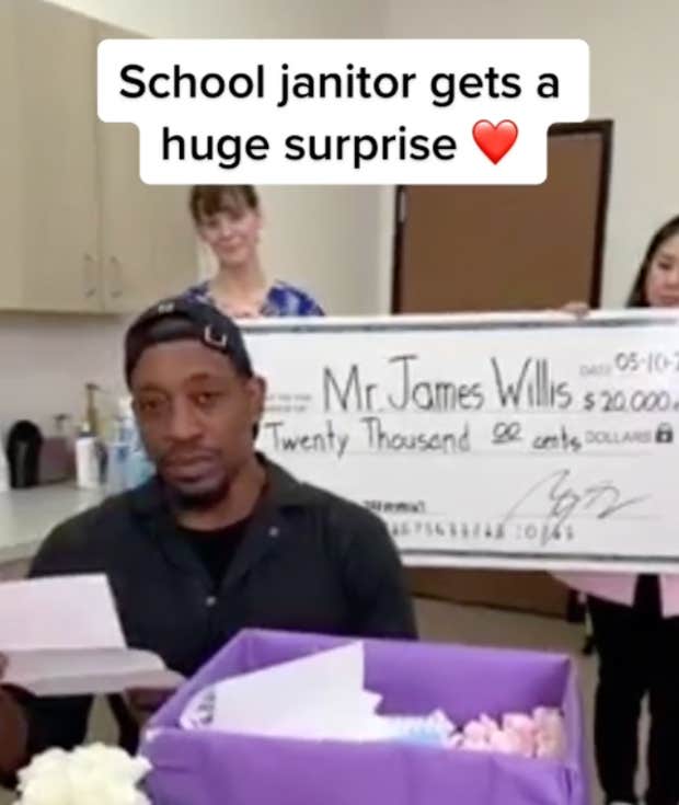 “Mr. Willis, this is from all the students here at Davis Junior High,” a voice off-camera explained while filming janitor James Willis opening a gift box. Willis read the attached note out loud, fighting back tears as he did so.