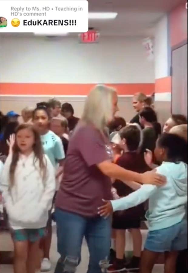 The video, posted by special education teacher and TikToker Miss A, known as @missasworld, was filmed on another teacher's final day of work before her retirement began. It shows her walking down the hallway of her school flanked by tons of excited children seeing her off. The teacher gives every child a warm goodbye hug, except for one young Black girl, who she gives a pat on the arm and a polite smile instead.