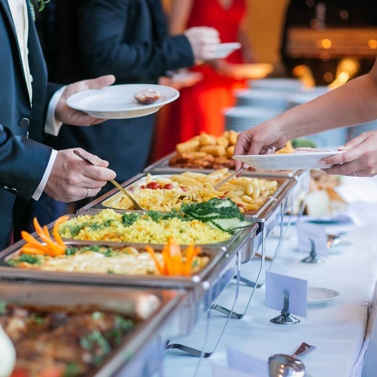 The best way to save money on catering for your wedding is not having to pay the guests' hospital bills after they get food poisoning.