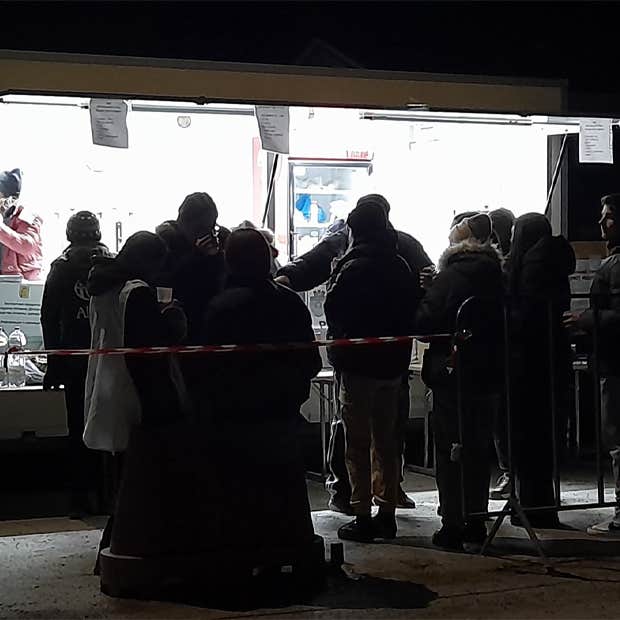 It could be a ride into Romania or elsewhere in Europe, a temporary or long-term place to stay, a bowl of soup or cup of tea, or simply a warm place to rest and drop off their luggage. She leads a group of refugees from the bus to the tent.