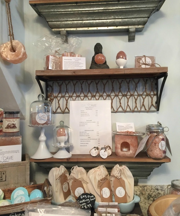 The building was perfect as it was technically a basement property under another business, helping to create a cave-like atmosphere. Once inside, the little lobby was filled with Himalayan salt lamps, salt-laden beauty products, and soothing music.
