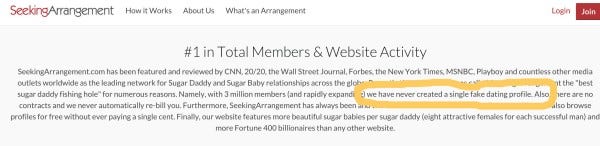 But not without first suggesting to that powers-that-be over at Seeking Arrangement that maybe they do a better job of investigating their members before they make promises like this: