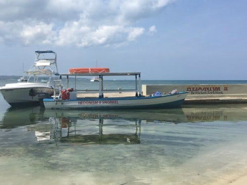 A boat pulled up beachside to usher resort guests to another resort for drinks at sunset. This is where the diversity of the resort showed its true colors.
