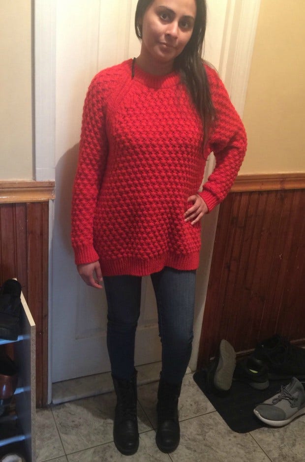 Since avoiding baggy or oversized clothing was a rule, for day one I wore an oversized sweater. Instead of trying to elongate my legs by pairing this outfit with a belt and heels, I just paired it with flats.