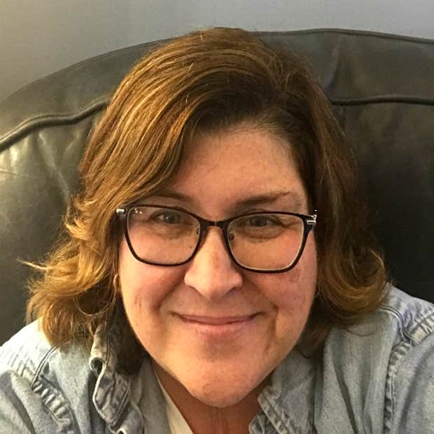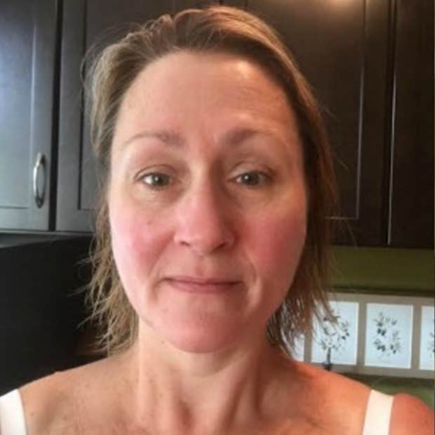 "I feel much fresher and cleaner and younger when I wear no makeup. It's sort of an oxymoron because I know I look younger with makeup because makeup is a miracle in covering up my old age wrinkles. But the first thing I do when I get home from work is, wash my face and put on comfies. On days that I work from home, I wear no makeup and just feel generally healthier. I also don't have white teeth no matter how many white strips I use, so I almost always wear lipstick to contrast the color of my lips and teeth." —Mindy Beth, 53