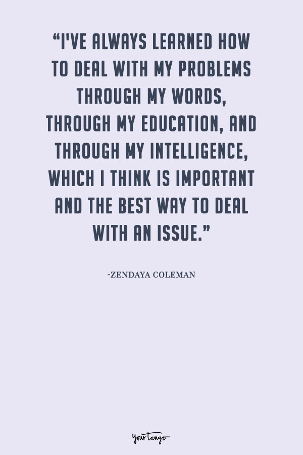 "I've always learned how to deal with my problems through my words, through my education, and through my intelligence, which I think is important and the best way to deal with an issue."— Zendaya