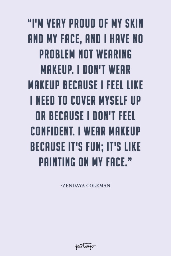 “I'm very proud of my skin and my face, and I have no problem not wearing makeup. I don't wear makeup because I feel like I need to cover myself up or because I don't feel confident. I wear makeup because it's fun; it's like painting on my face.”— Zendaya